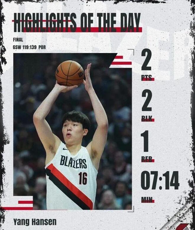 • 2025年10月25日 杨瀚森7分钟2分1板2帽 开拓者轻取勇士迎首胜 库里空砍35+6